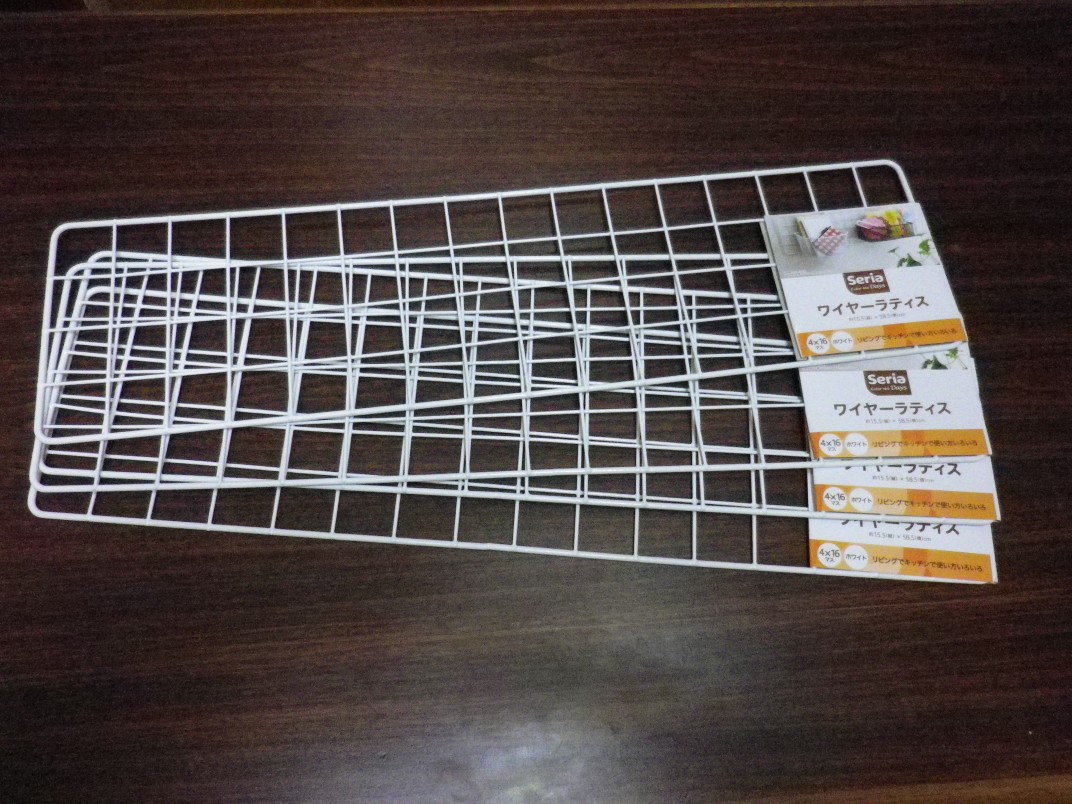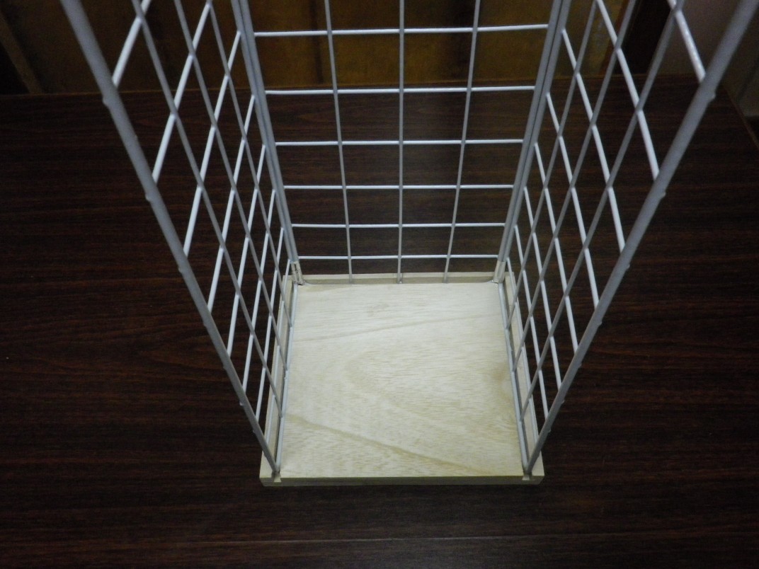 ワイヤーラティスは、幅155mm、長さ585mmのもので、桐の板は幅200mm、長さ450mm、厚さ9mmのものです。