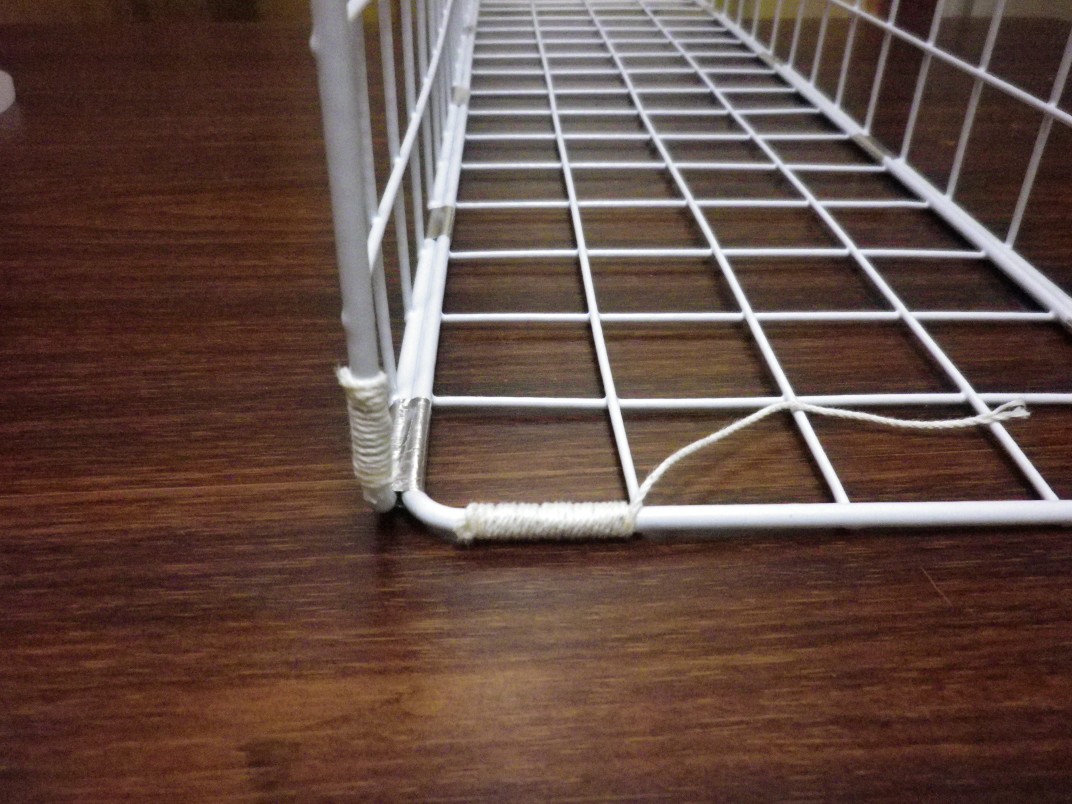 はめ込む前に、ワイヤーラティスの溝にはまる部分(両端2ヶ所ずつ)に、たこ糸をぐるぐると巻きつけておきます。