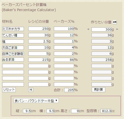 ベーカーズパーセント計算機(Baker’s Percentage Calculator)材料名レシピの分量ベーカーズ% 作りたい分量 g % g g % g g % gg % g g % g ...