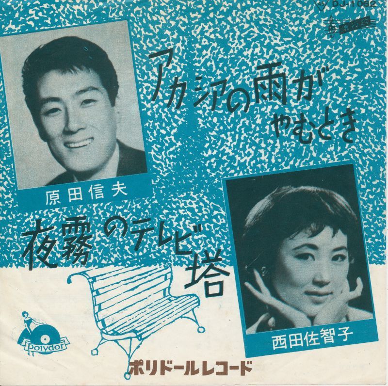 「アカシアの雨がやむとき」は、A面とB面に異なる歌手の歌う楽曲が収録されているシングルレコードのA面として、1960年4月に発売されたものです。B片面には、原田信夫が歌う「夜霧のテレビ塔」が収録されています。