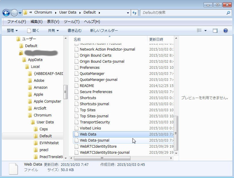 C:\Documents and Settings\{ユーザー名}\AppData\Local\Chromium\User Data\Default